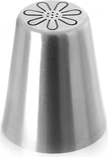 Russische spuitmond van roestvrij staal voor eenvoudig maken van bloemdecoraties op taarten, cupcakes en desserts. Dankzij het duurzame roestvrij staal is hij hygiënisch, duurzaam en vaatwasmachinebestendig. Past op alle spuitzakken en laat je in een handomdraai effectvolle bloemen met één druk maken.