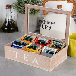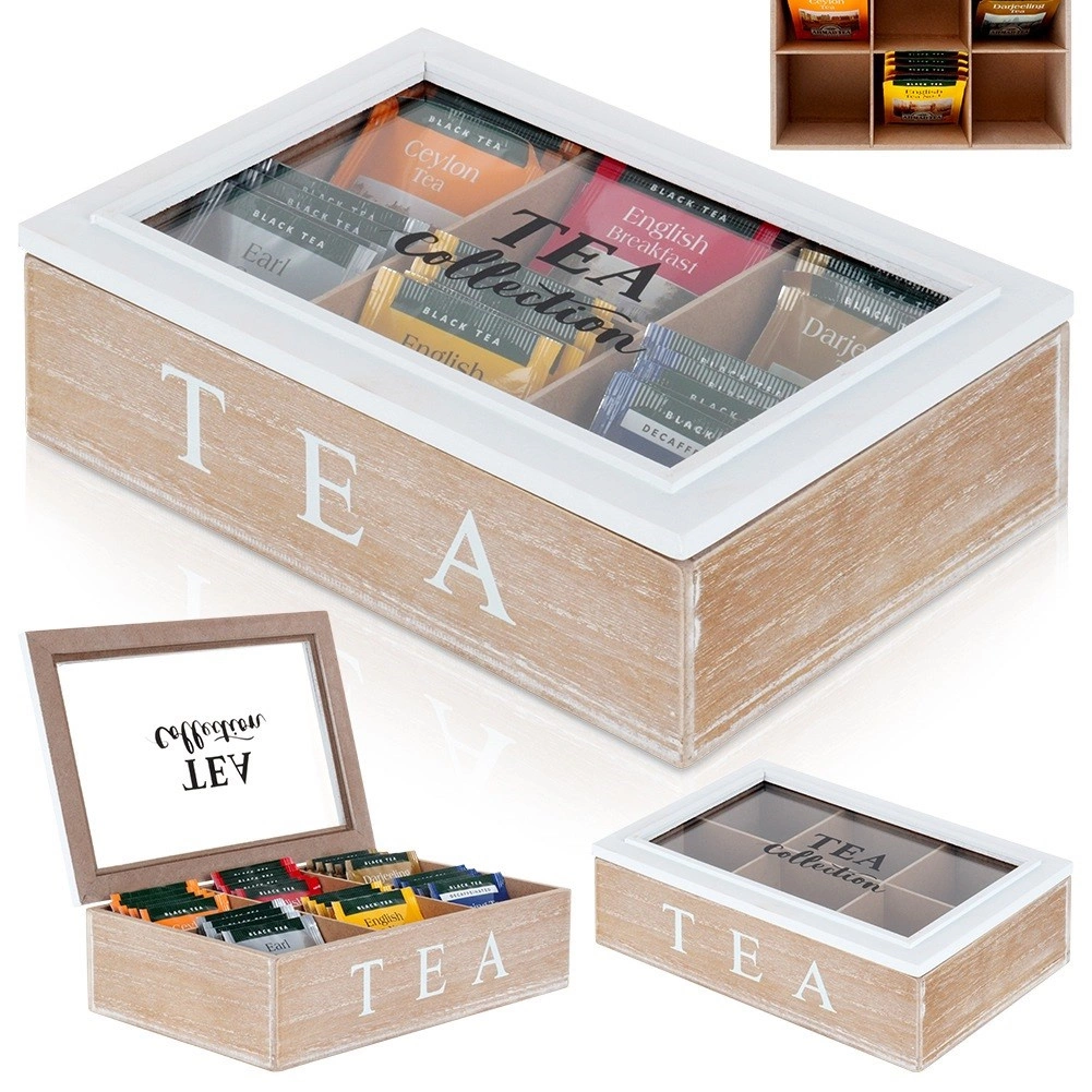 Bewaar verschillende theesoorten gescheiden en behoud hun aroma. Elk vak heeft ideale afmetingen voor gangbare zakjes.
