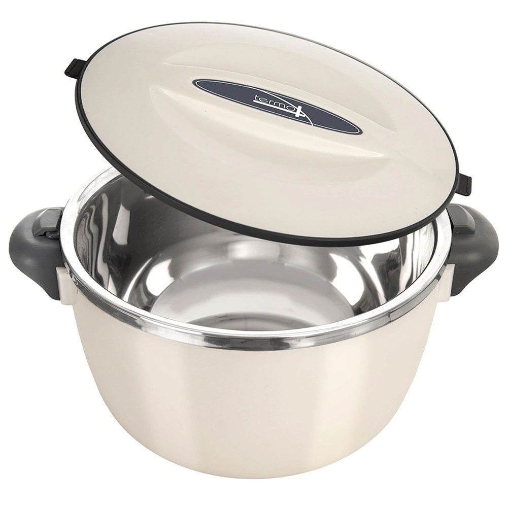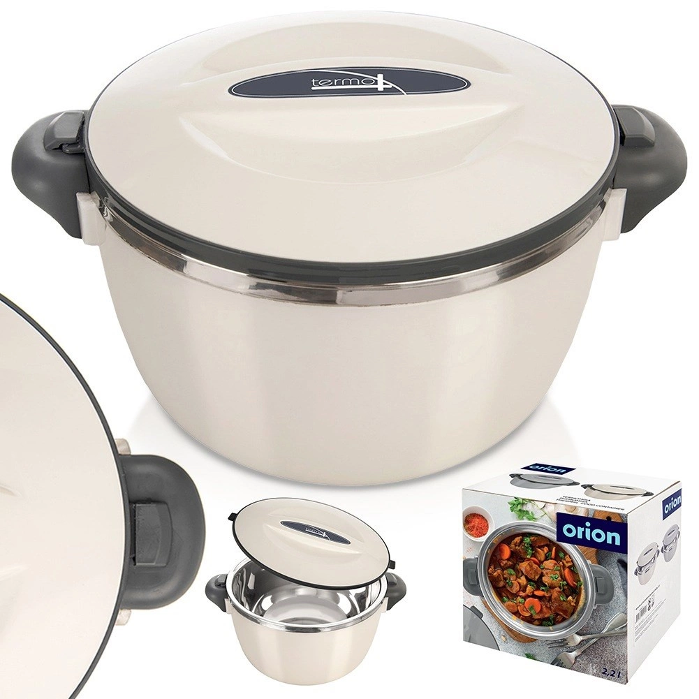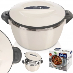 Praktische thermoschaal met een inhoud van 2 l houdt je gerechten langdurig warm of koud. Heeft een roestvrijstalen binnenzijde, een duurzame kunststof buitenkant in parelmoercrème en comfortabele zijhandgrepen voor eenvoudig dragen. Ideaal voor werk, school en uitstapjes. Nederlands merk ORION.