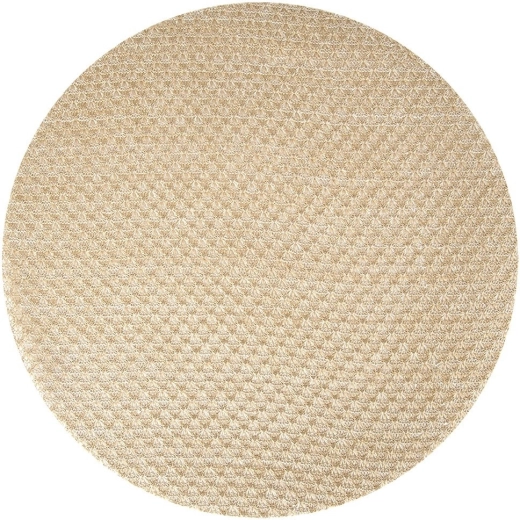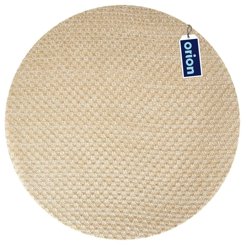 Elegante ronde tafelonderlegger met een diameter van 38 cm in beige met gouden draad geeft je tafel een luxe uitstraling. Hij is duurzaam, beschermt de tafel tegen hitte, krassen en vuil en is ideaal onder borden, mokken en decoraties. Universeel gebruik voor eetkamer, keuken en woonkamer.