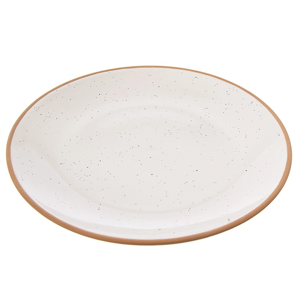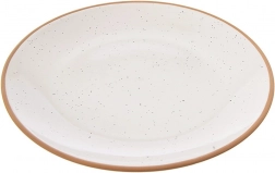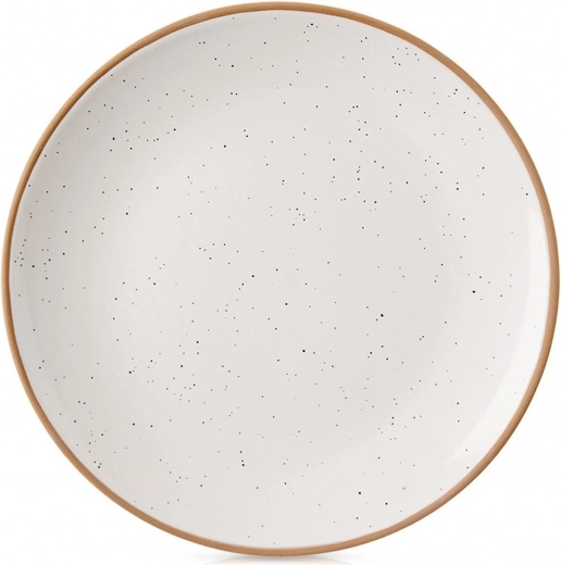 Elegante keramische bord met een diameter van 27 cm in een aangename beige tint met een subtiele gespikkelde decoratie en een steenachtige rand. Perfect voor dagelijks gebruik en feestelijke gelegenheden. Het is duurzaam, makkelijk schoon te maken en geschikt voor vaatwasser en magnetron. Dankzij de universele inzetbaarheid geschikt voor lunch, diner, desserts en het serveren van hapjes.
