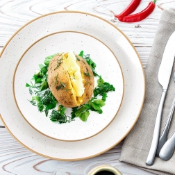 De beige, gespikkelde glazuur en de natuurlijke rand komen op elke tafel tot hun recht en laten zich makkelijk combineren met andere serviesstukken.