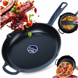 Deze universele gietijzeren pan is ideaal om te bakken, roerbakken, stoven en braden. De duurzame constructie en het geëmailleerde oppervlak maken zowel het koken als het schoonmaken gemakkelijker. De pan houdt hoge temperaturen langdurig vast, perfect voor steak, groenten, aardappelen en pizza. Geschikt voor de keuken, barbecue en open vuur.