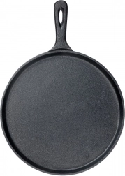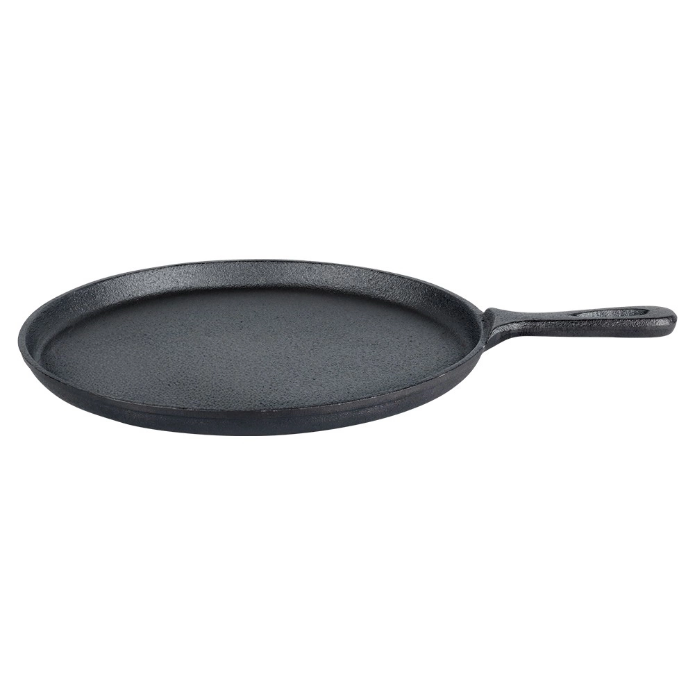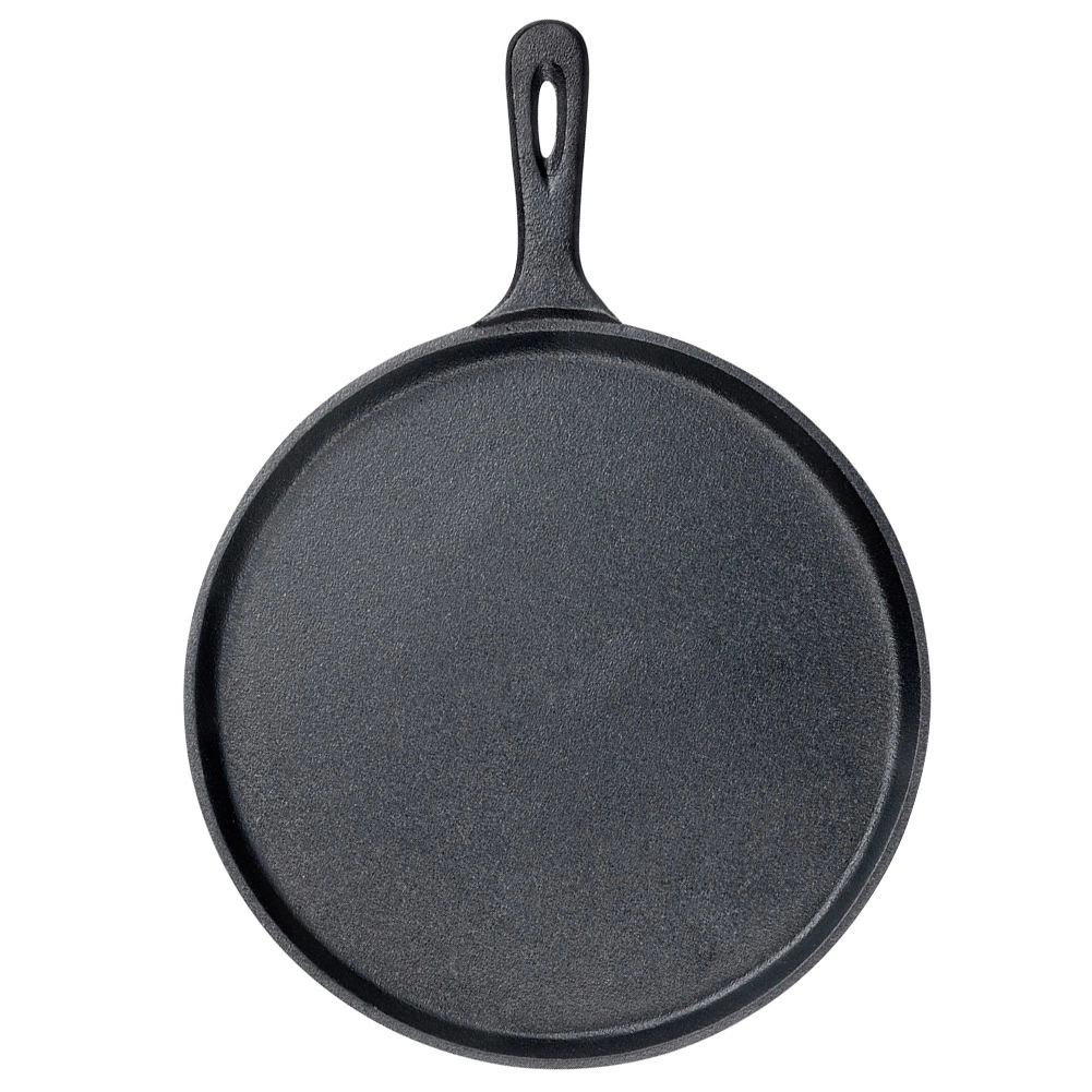 Massief gietijzer slaat warmte uitstekend op en verspreidt die gelijkmatig over het hele oppervlak. Het resultaat: mooi egaal gebakken pannenkoeken, tortilla’s en platbroden zonder koude zones.
