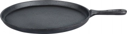 Deze gietijzeren pan met een diameter van 26 cm biedt een brede, lage en volledig vlakke bakplaat, ideaal voor dunne pannenkoeken, tortilla’s of platbroden. Gietijzer zorgt voor egale garing en langdurige warmtebehoud, zodat het eten langer warm blijft. Het ergonomisch gevormde oor met ophangoog vergemakkelijkt hanteren en opbergen.