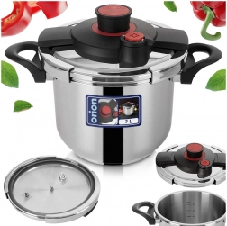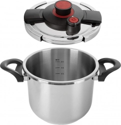 Praktische snelkookpan van roestvrij staal met een inhoud van 7 l voor snel en energiezuinig koken. Dankzij de automatische dekselvergrendeling, twee kookprogramma’s en een veiligheidsventiel bereid je soepen, goulash, vlees en groenten sneller, smaakvoller en met minder energieverbruik. De sterke sandwichbodem verdeelt de warmte uitstekend en is geschikt voor alle soorten kookplaten, inclusief inductie.