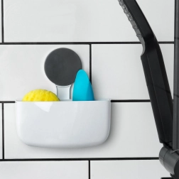 Deze universele doucherek met grote zuignap biedt directe en veilige opbergruimte voor cosmetica en accessoires zonder te boren. Dankzij de compacte afmetingen van 16 × 7 × 17 cm past hij in elke badkamer en de witte, eenvoudig afwasbare kunststof staat goed in zowel moderne als klassieke interieurs.