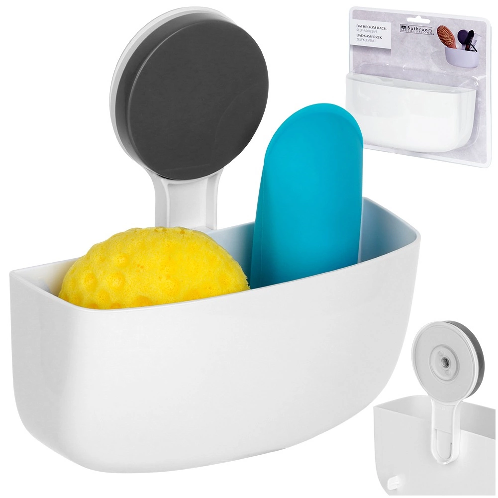 Praktische badkamerplank met zuignap voor snelle montage zonder boren. Geschikt voor in de douche, bij het bad en bij de wastafel. Afmetingen 16 × 7 × 17 cm, gemaakt van duurzaam kunststof in het wit, met afvoergaten en draagvermogen tot 2 kg. Eenvoudige installatie op gladde oppervlakken, stabiele grip en eenvoudig onderhoud.