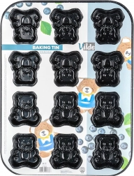 Maak speelse koekjes of mini muffins met perfecte details dankzij de vorm van hoogwaardig koolstofstaal met een granieten antiaanbakafwerking. De vorm van 35 × 26,5 × 2 cm biedt plaats aan 12 porties, elk in de vorm van een beertje van ongeveer 6,5 × 6 cm. Het materiaal geleidt warmte uitstekend en bakt gelijkmatig, zodat je lekkernijen mooi gaar zijn en gemakkelijk lossen.