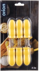 Geniet van maïs op de kolf zonder vieze handen of verbrande vingers. Deze set van zes houders biedt een stevige grip dankzij de geribbelde gele handgrepen en de scherpe twee roestvrijstalen pinnen op elk stuk. Prik ze eenvoudig in beide uiteinden van de kolf en serveer of eet met maximaal comfort.