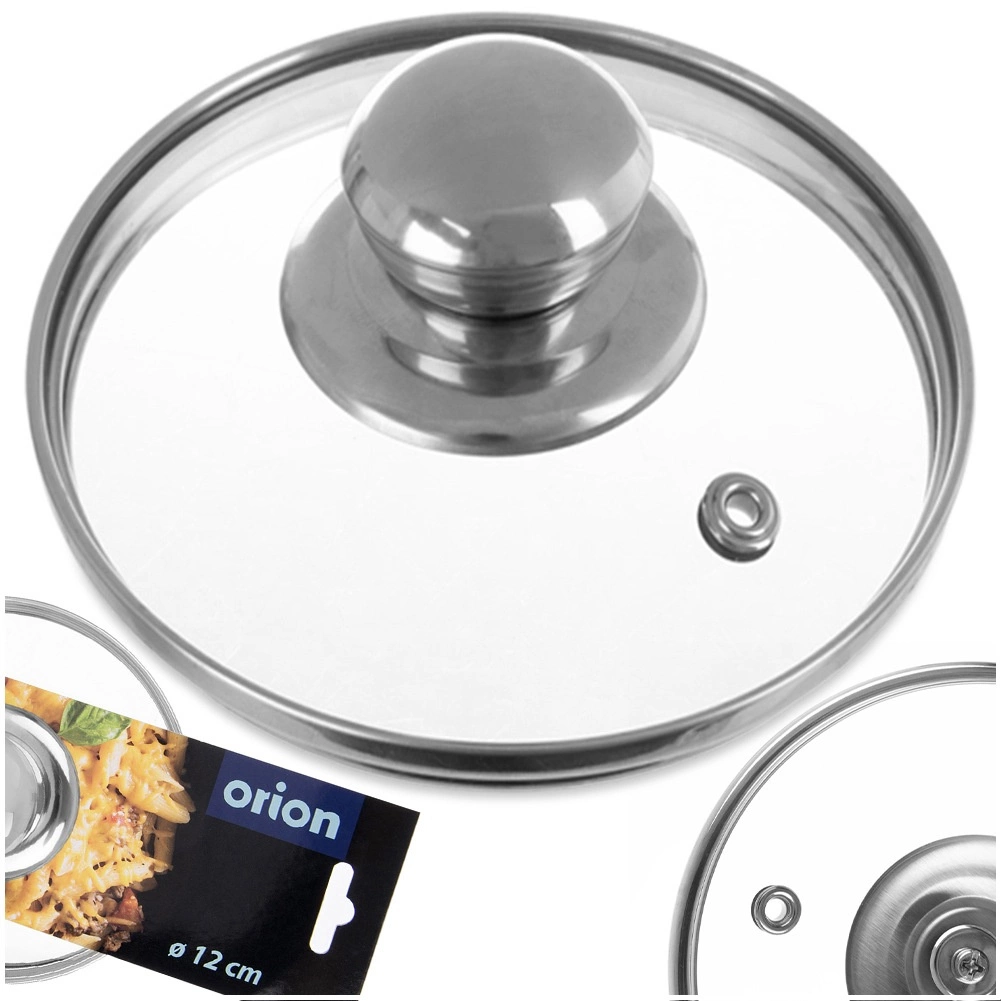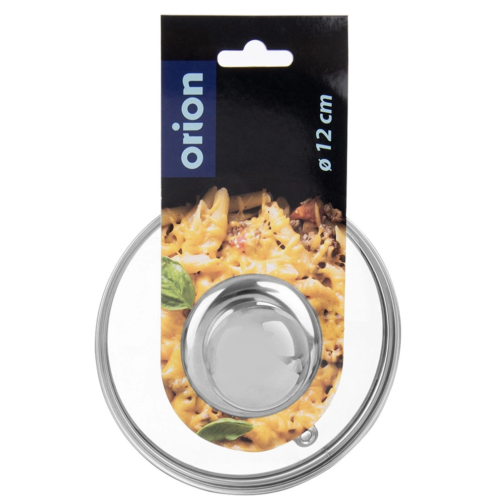 Het praktische glazen deksel ORION met een diameter van 12 cm is een ideale aanvulling voor kleine potten, steelpannen en pannen. Het transparante, hittebestendige glas met een RVS rand en massieve greep zorgt voor veilige hantering en perfect zicht op het koken zonder het deksel te hoeven optillen. De licht bolle vorm bevordert de circulatie van hete lucht en de ontluchtingsopening voert overtollige stoom af.