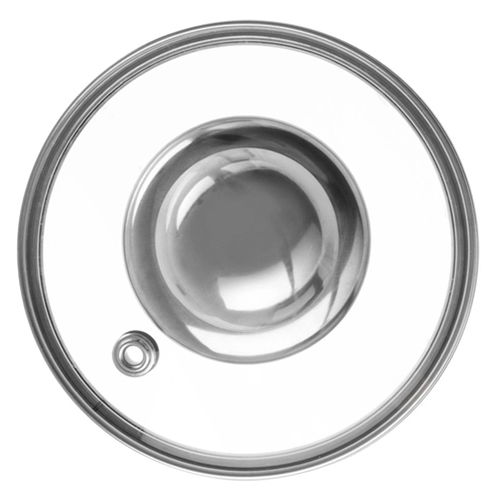 Universeel glazen deksel met een diameter van 12 cm met een stevige roestvrijstalen rand, duurzame metalen greep en ontluchtingsopening. Hittebestendig glas tot 200 °C maakt het mogelijk het koken te controleren zonder het deksel op te tillen, versnelt de bereiding en vermindert spatten van water en vet. Geschikt voor potten, steelpannen en koekenpannen van overeenkomstige afmeting en vaatwasserbestendig.