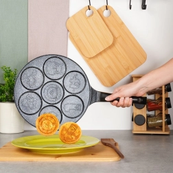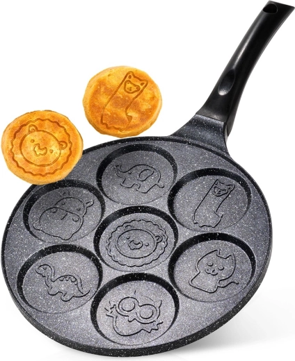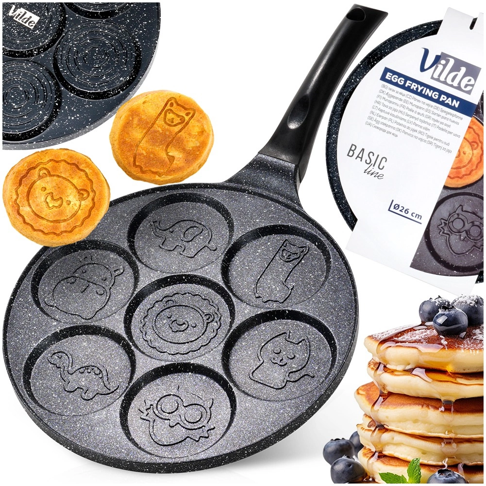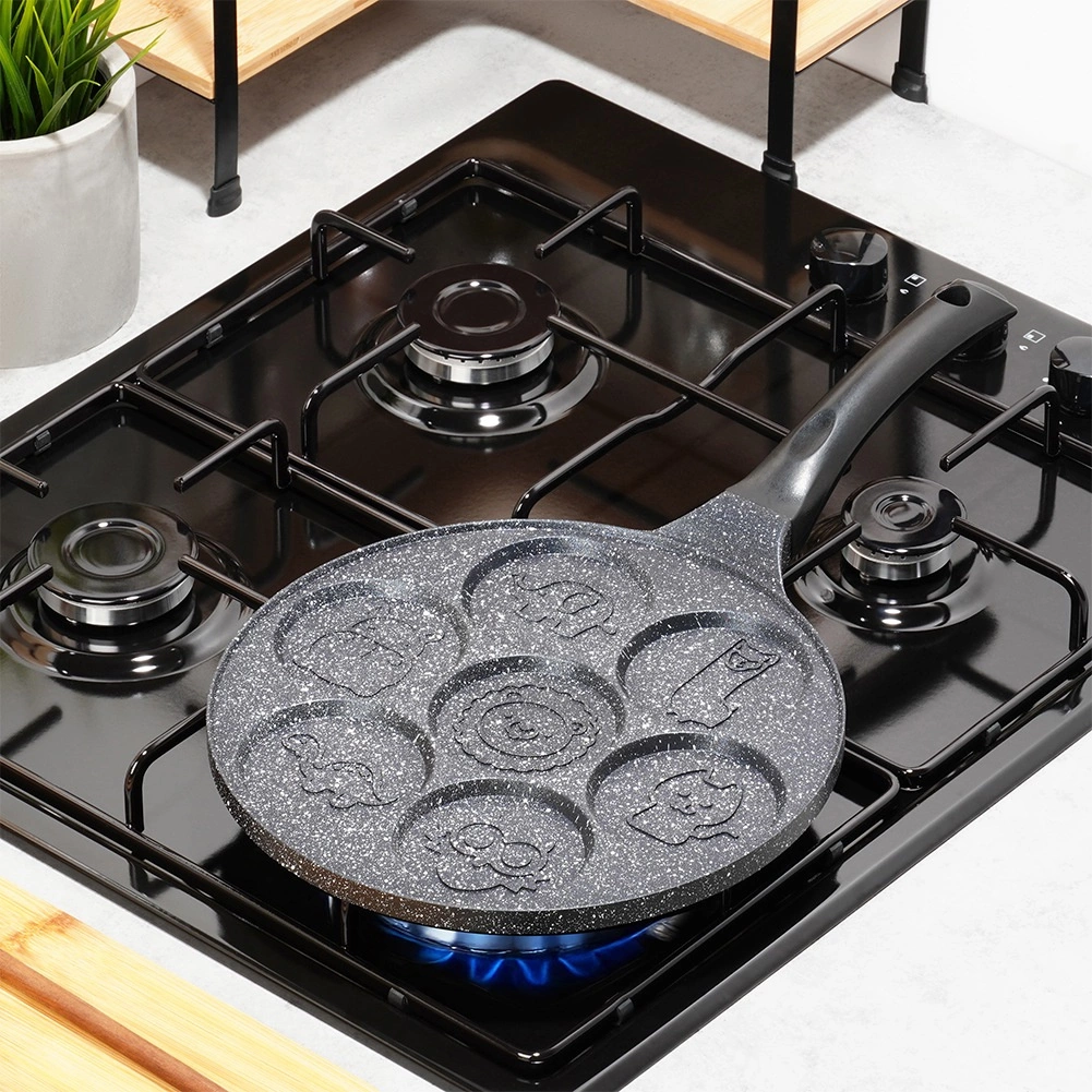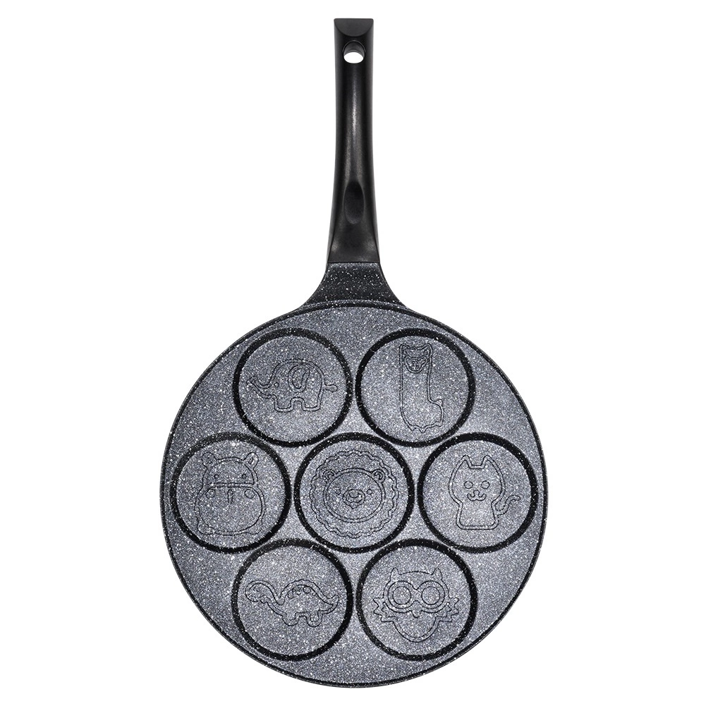 Deze stijlvolle pan met zeven vormen is ideaal voor het bereiden van eieren, poffertjes en mini pancakes met vrolijke dierenreliëfs. Het anti-aanbak granieten oppervlak zorgt voor gemakkelijk lossen en eenvoudig schoonmaken, terwijl de aluminium behuizing snelle en gelijkmatige warmteverdeling biedt.