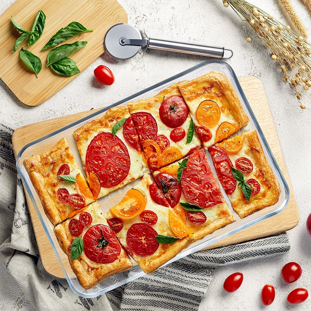 Deze lage glazen schaal is ideaal voor het bereiden van koekjes, desserts, groenten en vlees. Transparant borosilicaatglas maakt het eenvoudig om het bakproces te controleren en is tegelijk duurzaam genoeg voor dagelijks gebruik. De stijlvolle look is ook perfect voor direct serveren op tafel.