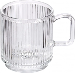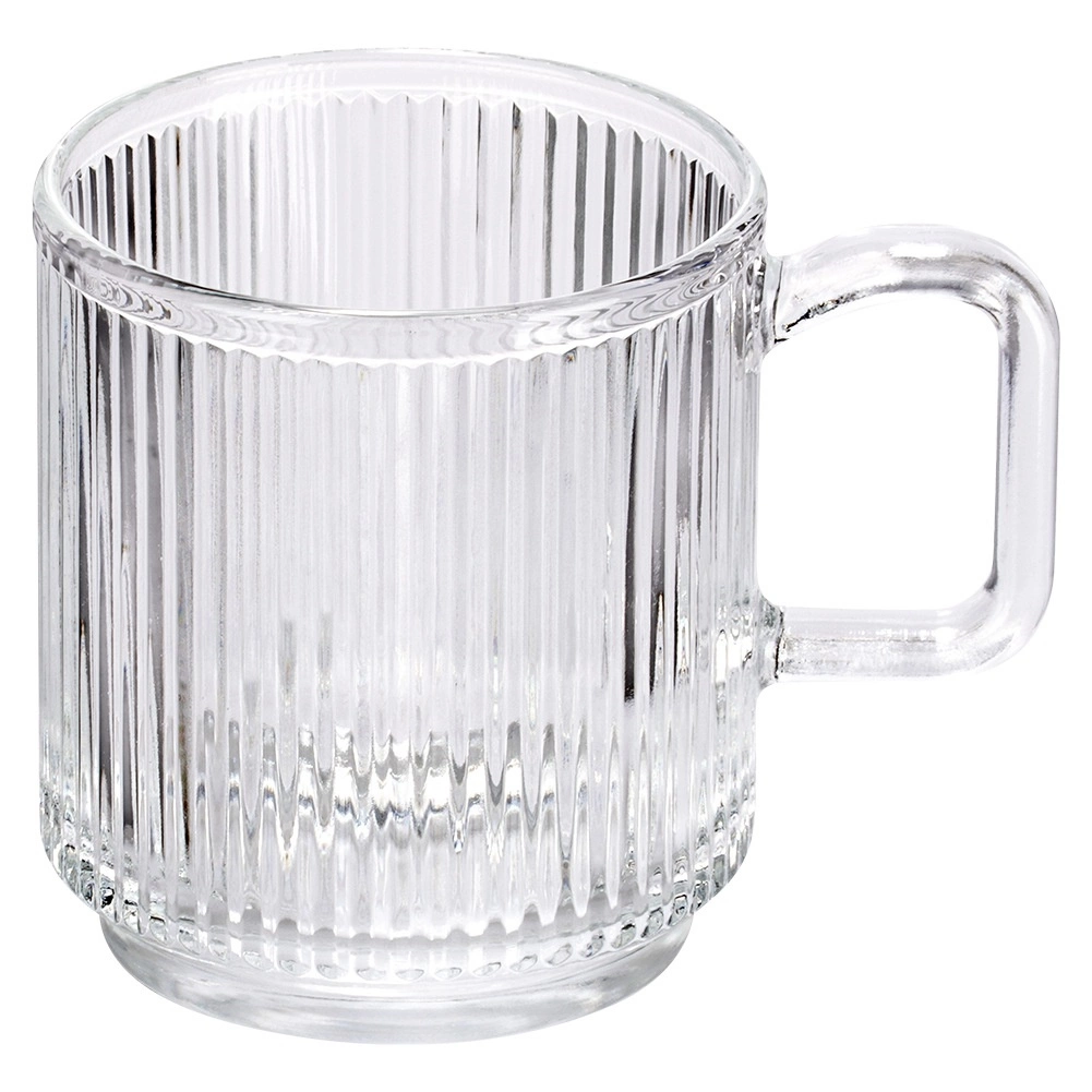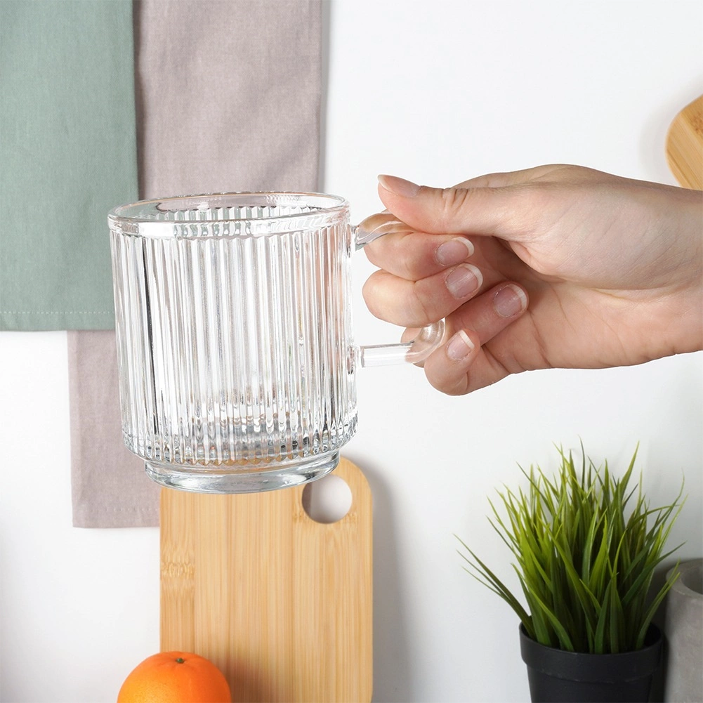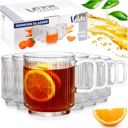 Ontdek de universele glazen met oor, perfect voor thee, koffie, water, limonades en sappen. Dankzij de geribbelde structuur liggen ze prettig in de hand, glijden ze niet en ogen ze modern en verzorgd op tafel. Het praktische volume van 350 ml is geschikt voor dagelijks gebruik en voor het serveren van drankjes aan gasten.