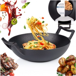 De wok is universeel en kan bakken, stoven, aanbraden en braden aan. Je kunt hem gebruiken op gas, elektrisch, keramisch, halogeen, inductie, in de oven en op de grill. De dubbele handgrepen bieden een veilige grip bij het hanteren (ovenwanten aanbevolen). Met de juiste verzorging gaat het kookgerei zeer lang mee.