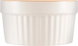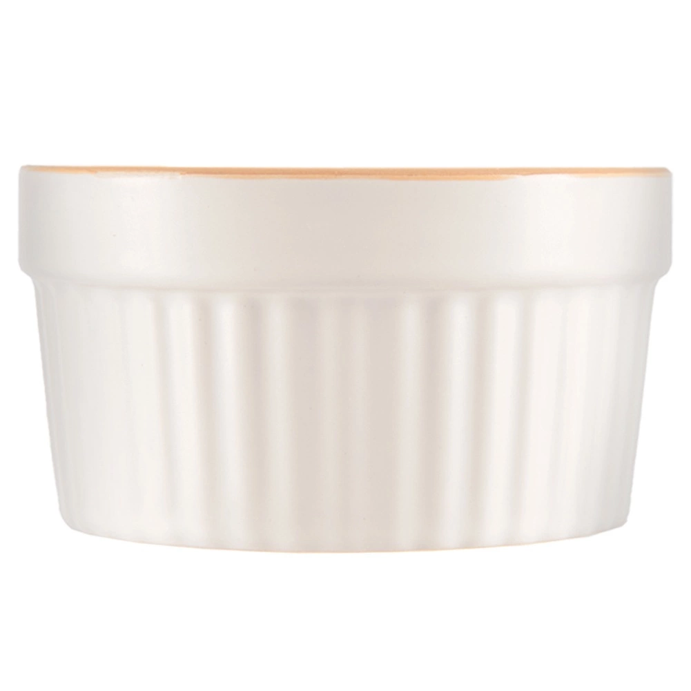 Praktische keramische ovenschaal met een inhoud van 180 ml en een diameter van 9 cm, ideaal voor crème brûlée, soufflé, mini ovengerechten of sauzen en dips. Elegant wit met een bruine rand, hittebestendig tot 200 °C, geschikt voor oven, magnetron en vaatwasser.