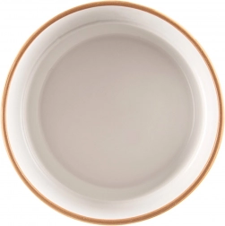 Het elegante witte oppervlak met contrasterende bruine rand past moeiteloos bij elke tafelaankleding. De schaal is hittebestendig tot 200 °C, geschikt voor gebruik in de oven, om op te warmen in de magnetron en kan zonder zorgen in de vaatwasser.