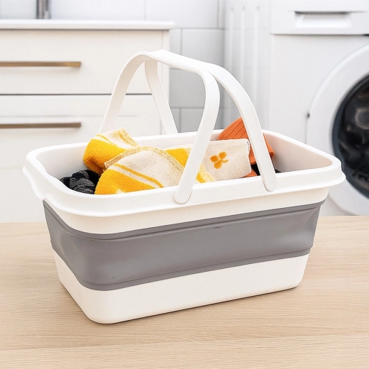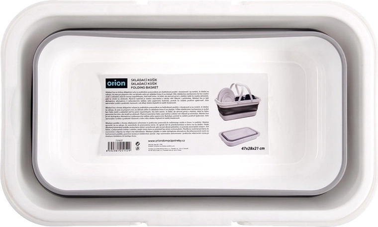 Praktische opvouwbare wasmand met een inhoud van 28 l, voorzien van een verstevigde bodem en comfortabele handgrepen. Dankzij het plat opvouwbare ontwerp bespaart hij ruimte en is hij ideaal voor thuis, in de auto en op reis. Opgevouwen zijn de afmetingen 47 × 28 × 7,5 cm, uitgeklapt 47 × 28 × 21 cm.