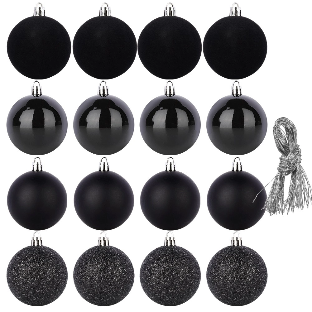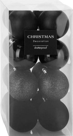 Onbreekbare zwarte kerstballen 8 cm, 16 stuks