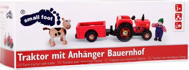 - Tractor, afneembare aanhanger, figuur van boer, figuur van koe