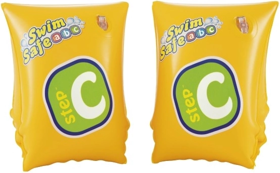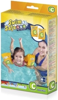Opblaasbare Swim Safe zwembandjes geel 2 kamers 25x15 cm in doos 12x19,5 cm voor 3-6 jaar