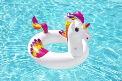Breng een vleugje sprookje in de zomer met de opblaasbare zwemband in de vorm van een eenhoorn van Bestway. Kleurrijk design, afmetingen 119 × 91 cm, duurzaam getest vinyl en een draagvermogen tot 90 kg zorgen voor comfortabel relaxen aan het zwembad, op het meer en aan zee. Inclusief reparatiepatch voor snelle fixes.