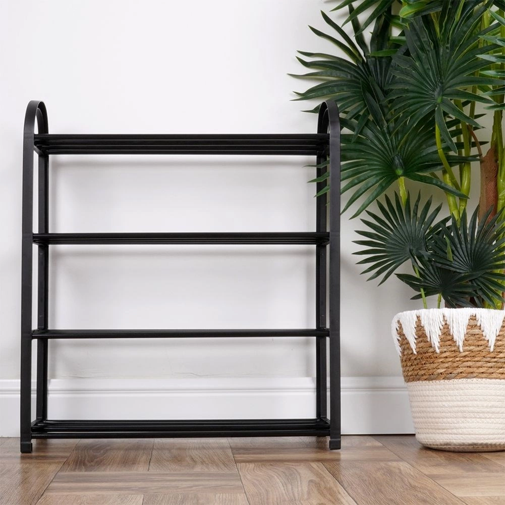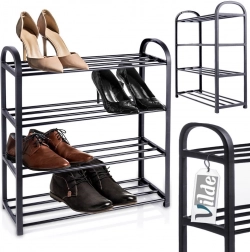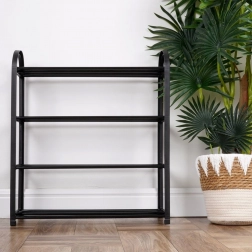 Houd uw schoenen netjes met het elegante zwarte schoenenrek dat de verticale ruimte maximaliseert. Vier open planken met een tussenafstand van ca. 14,5 cm zorgen voor gemakkelijke toegang, goede ventilatie en snel overzicht over uw paren. Het minimalistische ontwerp past in zowel moderne als klassieke interieurs.