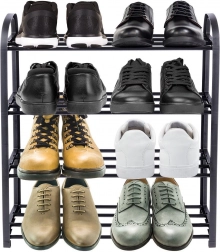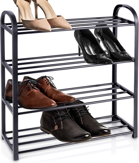 Metalen zwarte schoenenrek 4-laags 49,5 × 18,5 × 56,5 cm
