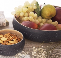 Deze stijlvolle bamboe kom combineert de natuurlijke look van licht hout met een moderne grijs gespikkelde buitenkant. Dankzij de inhoud van 4 l en de brede, lage vorm is hij perfect voor het dagelijks serveren van salades, fruit, snacks en warme gerechten tot 40 °C.