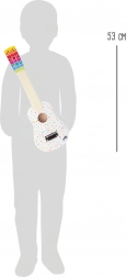 Stijlvolle kinder gitaar in het wit met gekleurde stippen, ideaal voor de eerste muzikale stapjes. Stimuleert ritmegevoel, het leren van basisakkoorden en muzikaal gehoor, en is een geweldige aanvulling voor een kinderkapel of speelkamer thuis.