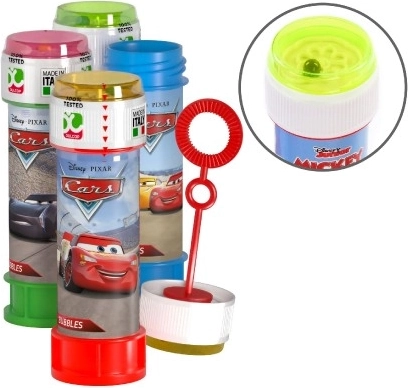 Bellenblaas met Cars motief met een inhoud van 60 ml biedt veel plezier dankzij de kleurrijke dop, waarin een leuk spel verborgen zit. Het blaaspijpje maakt deel uit van de dop.