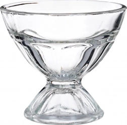 Elegante set van zes glazen coupes met een inhoud van 100 ml, ideaal voor ijs, desserts en fingerfood. Gemaakt van hoogwaardig dik glas met een decoratief reliëf, krasbestendig en geschikt voor de vaatwasser. Compact formaat voor stijlvol serveren, zowel thuis als in de horeca.