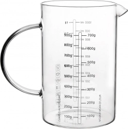 De glazen maatbeker in kannenvorm is een onmisbare hulp in elke keuken. Dankzij het ergonomische handvat en de praktische tuit zorgt hij voor precies en netjes schenken en strooien van ingrediënten. Gemaakt van duurzaam borosilicaatglas, kan hij een breed temperatuurbereik aan en is hij ideaal voor dagelijks koken en bakken.