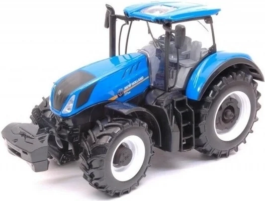 Duik in de wereld van boerderijmachines met het tractor model New Holland T7.270. Deze authentieke replica is ontworpen met oog voor detail, van de robuuste zwarte banden tot de witte velgen en de cabine opbouw.