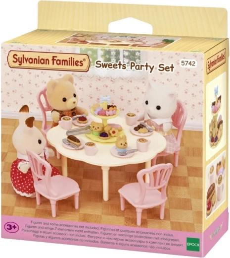 Creëer een sprookjesachtige theesfeer met de set Sylvanian Families tafel, stoelen en zoetigheden. In de verpakking vind je een grote eettafel, vier stoelen en een complete tafelaankleding voor vier figuurtjes – van borden en vorken tot aan kopjes voor koffie en cappuccino. Het rijke aanbod aan desserts, zoals muffins, taarten, tartelettes, chocolade, snoepjes en koekjes, geeft elk samenzijn een realistische en speelse touch.