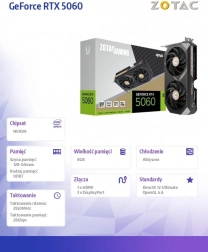 De ZOTAC GAMING GeForce RTX 5060 AMP combineert moderne prestaties met een zuinig ontwerp. De nieuwe NVIDIA Blackwell-architectuur verhoogt de efficiëntie van rasterisatie en raytracing, terwijl DLSS 4 geavanceerde AI inzet om de framerates te verhogen met behoud van detail. Het GDDR7-geheugen met een 128‑bit busbreedte zorgt voor snelle datadoorvoer voor veeleisende games en creatieve toepassingen.