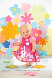 De vrolijke bloemenprint en het speelse konijntje geven de BABY BORN-pop een unieke stijl en stimuleren fantasierijk spel.