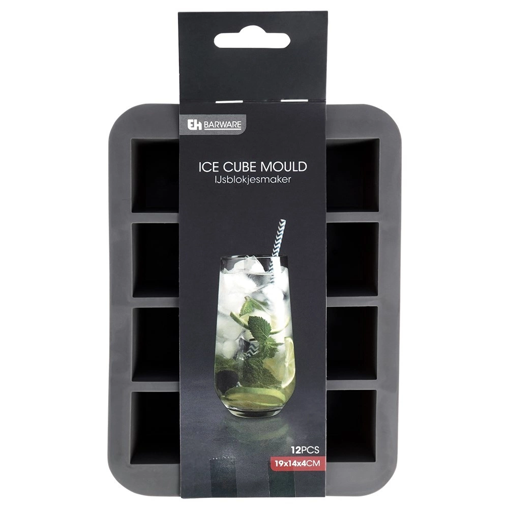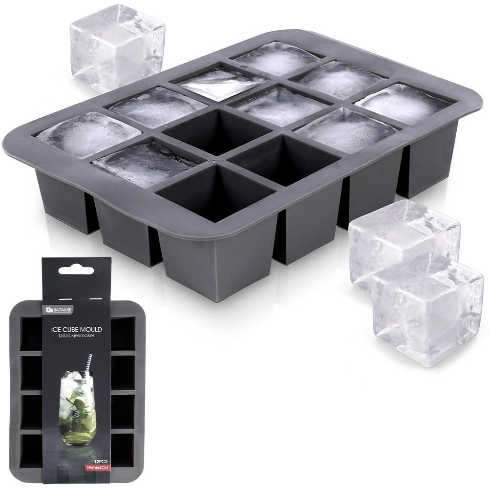 Praktische siliconen ijsvorm maakt 12 grote vierkante blokjes van 3,5 × 3,5 × 3,5 cm. Dankzij het flexibele siliconen materiaal komen de blokjes er makkelijk uit, smelten ze langzamer en blijven je drankjes langer koud zonder onnodig te verwateren. De vorm is makkelijk schoon te maken en vaatwasserbestendig.