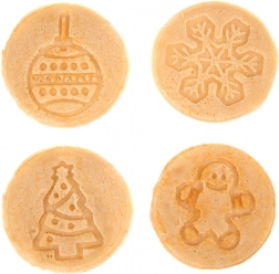 - vier vormpjes met kerstmotieven: kerstbal, boompje, peperkoekmannetje, sneeuwvlok