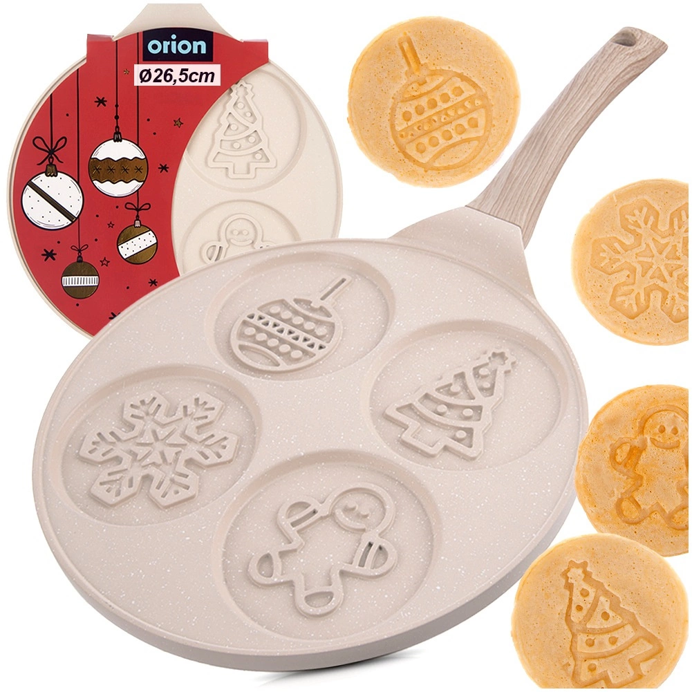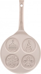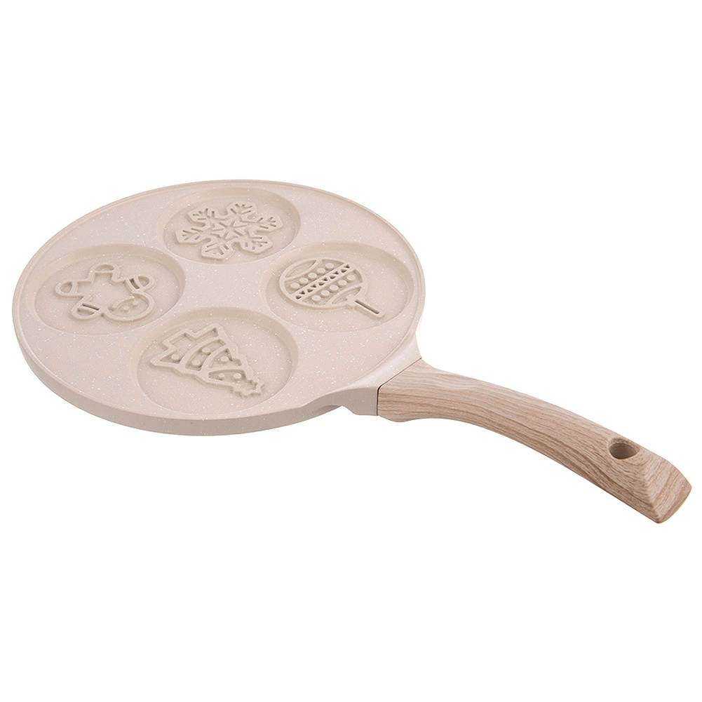 Geniet van eenvoudig en snel koken met een pan met een diameter van 26 cm en vier vormpjes (Ø 10 cm) die perfect ronde porties maken met reliëf van feestelijke motieven. Het anti-aanbak granieten oppervlak zorgt voor gelijkmatig bakken zonder aanbranden en met minimaal oliegebruik.