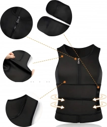 Dit heren compressie sauna-vest combineert een elastisch materiaal met een praktische voorrits en dubbele klittenband-strap. Door het verhoogde thermische effect bevordert het intensiever zweten en kan het lichaamsvormende effecten ondersteunen, terwijl de stevige constructie zorgt voor stabilisatie van core en rug.