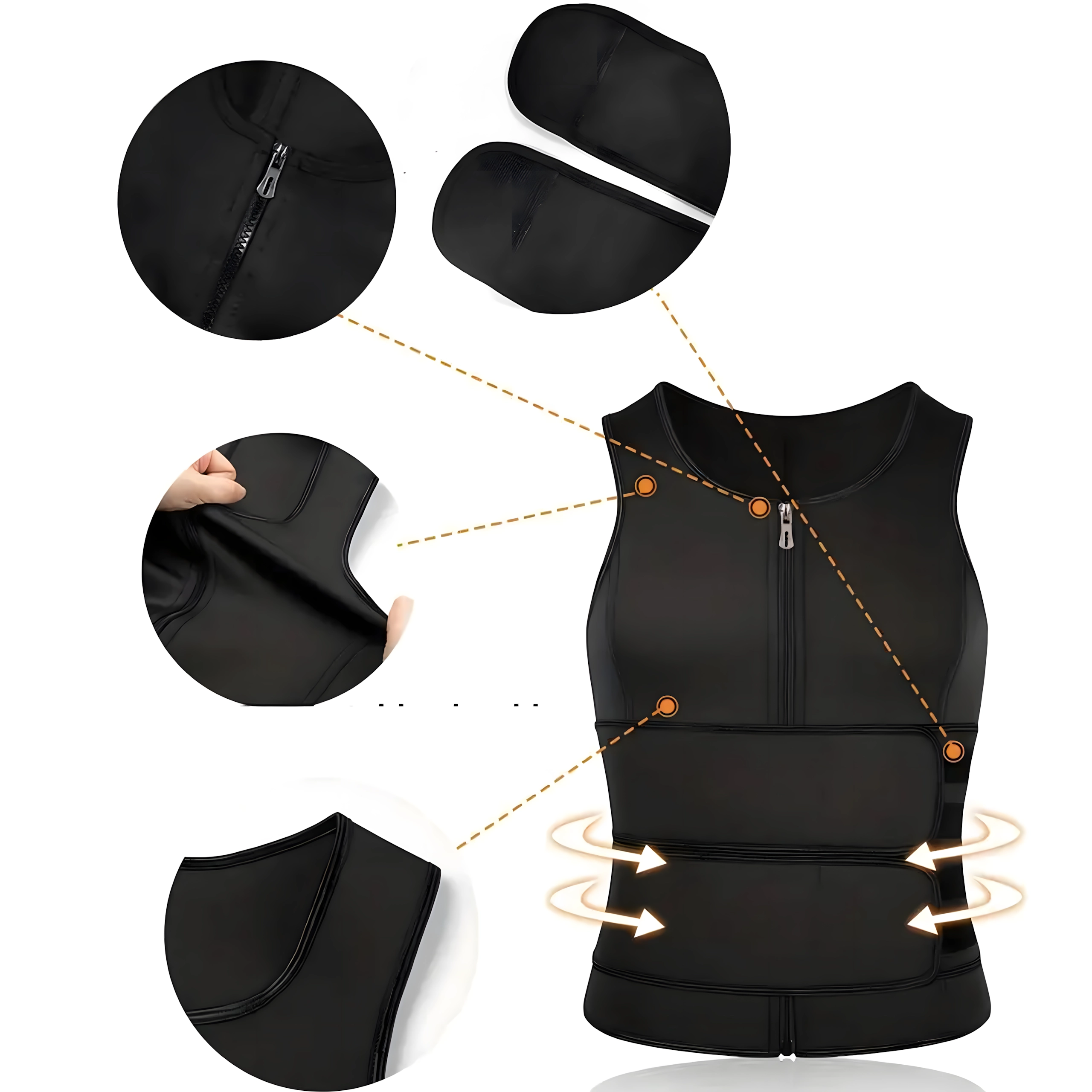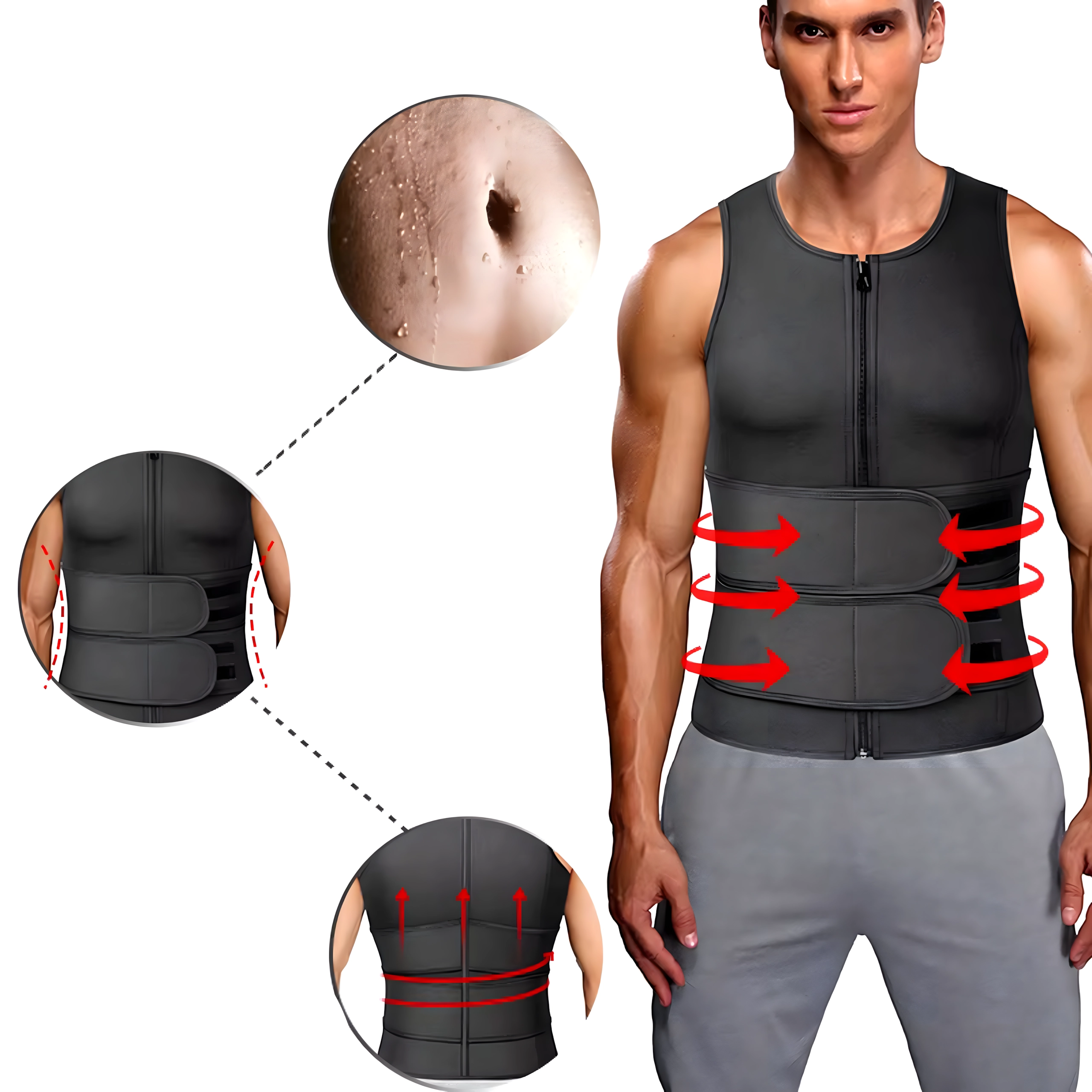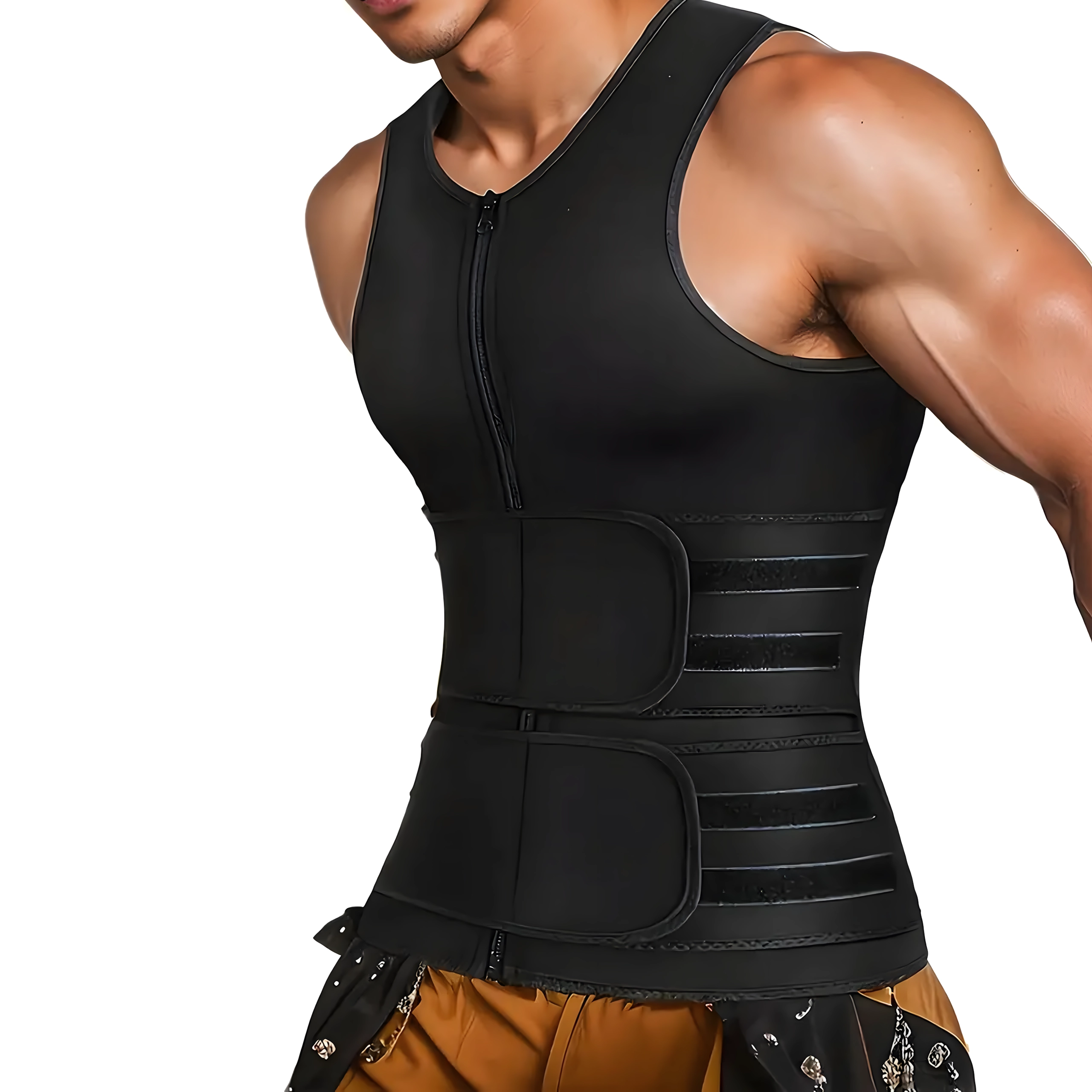 Versnel je trainingsresultaten met dit heren neopreen vest dat de lichaamstemperatuur verhoogt, transpiratie stimuleert en helpt calorieën te verbranden. Dankzij de rits en verstelbare banden biedt het stevige compressie, taillevorming en rugondersteuning tijdens dagelijkse workouts en bij casual gebruik.