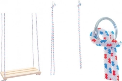 Klassieke houten schommel in natuurlijke kleur voor thuis en in de tuin. Biedt stabiel en veilig schommelen, een stevige houten zitting 46 × 19 cm, draagvermogen 80 kg en duurzame touwen van 1,7 m. Geschikt voor kinderen vanaf 3 jaar.