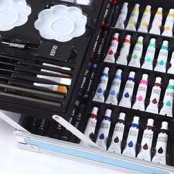 Deze complete knutselset in een stevig, draagbaar koffertje biedt alles wat kinderen en beginnende kunstenaars nodig hebben om hun fantasie te ontwikkelen. Je vindt er kleurpotloden, stiften, waskrijtjes, oliepastels, aquareltabletten en -verftubes, penselen, paletten en andere onmisbare hulpmiddelen. Dankzij de doordachte indeling heeft elk onderdeel zijn plek en is creatief werken overzichtelijk en comfortabel.