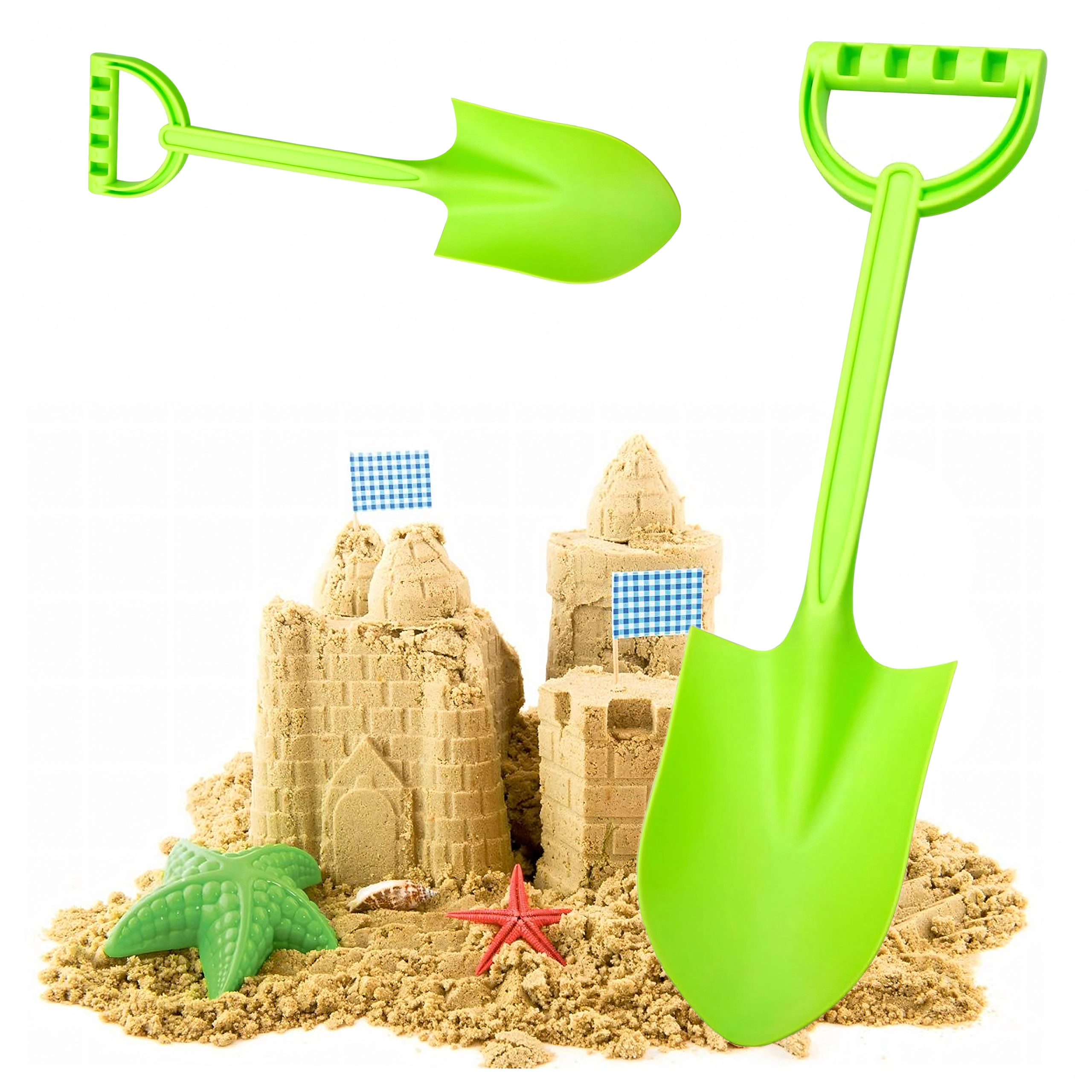 De puntige schep en de gladde randen maken vormen, het graven van tunnels en precies scheppen van zand bij het bouwen van kastelen makkelijker.