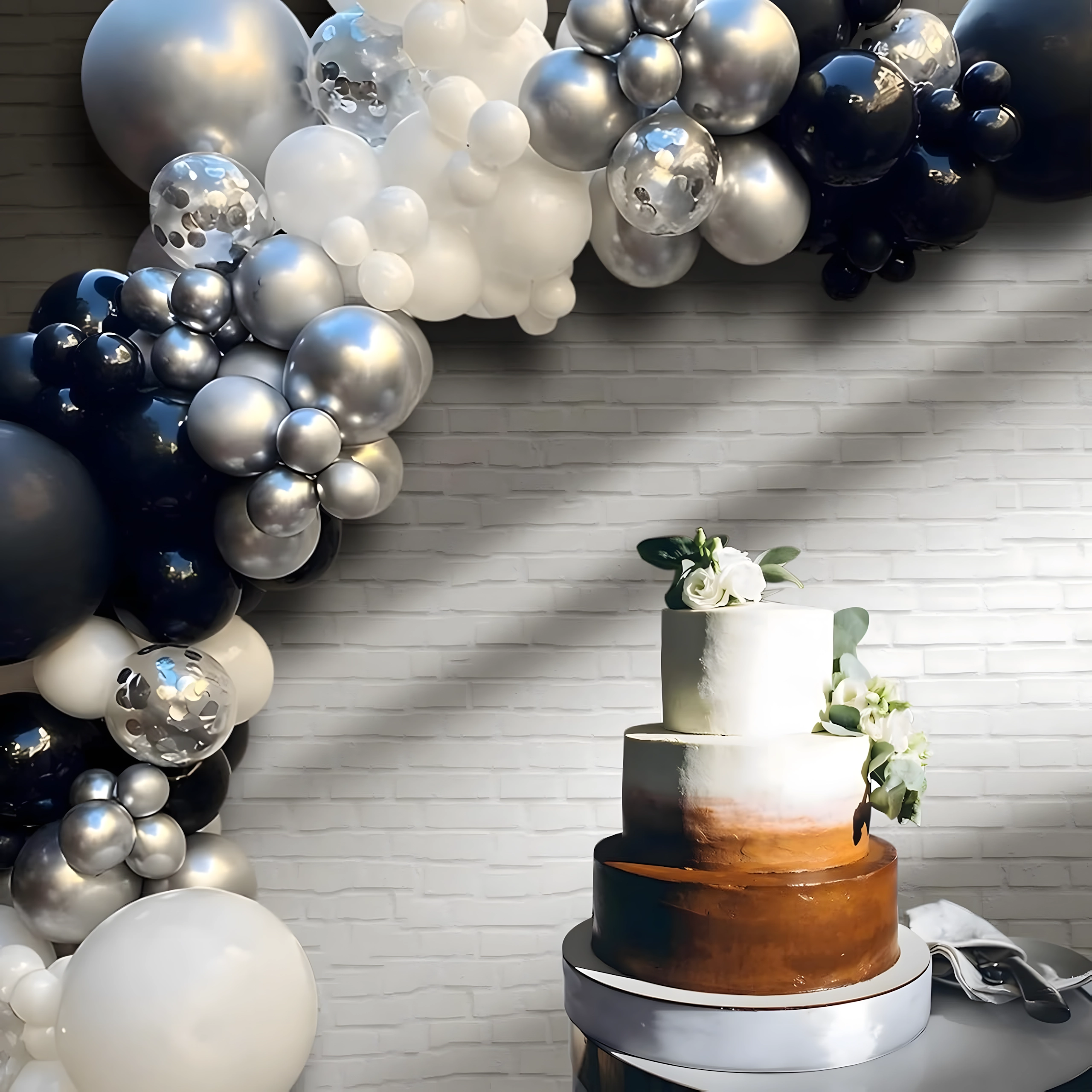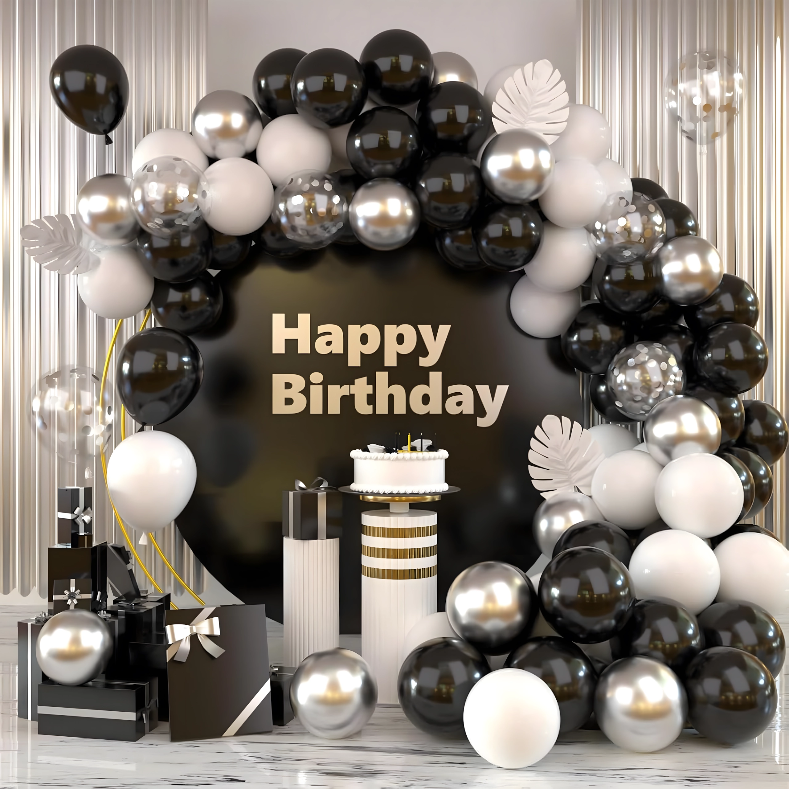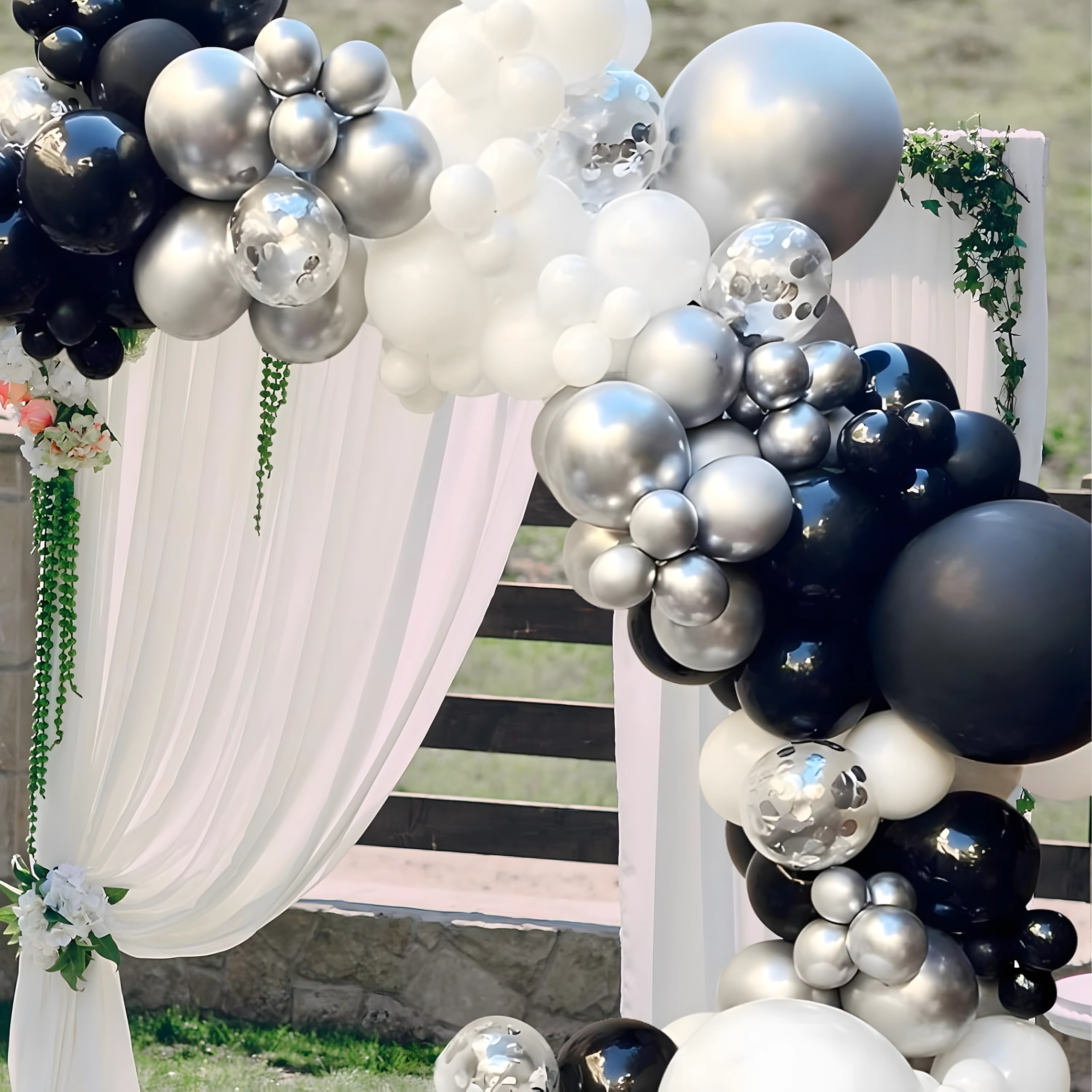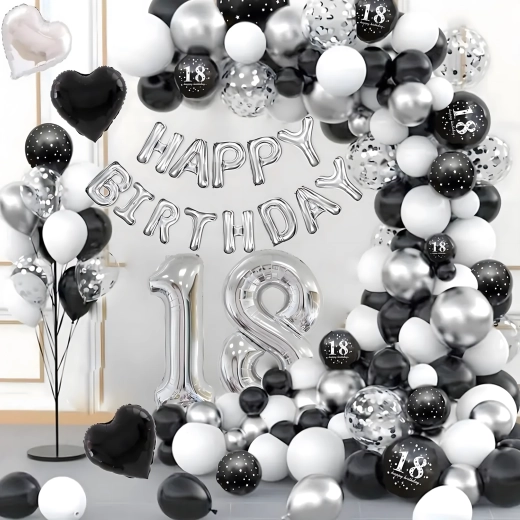 Deze elegante ballonnenslinger in een moderne zwart‑zilver‑witte kleurcombinatie geeft je feest een extra bijzondere uitstraling. Ook beginners kunnen hem eenvoudig samenstellen, met als resultaat een opvallende decoratie die perfect past als entreeboog, achtergrond achter een sweet table of voor een fotohokje.