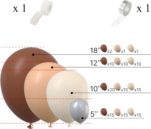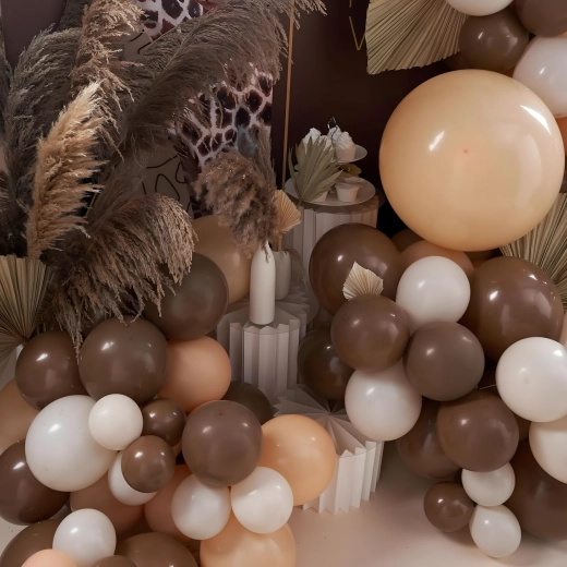 Geef je feest een elegante sfeer met een ballonkrans in trendy goud-bruine tinten. De set is ontworpen voor een snelle en eenvoudige installatie, zodat je binnen enkele minuten een indrukwekkende aankleding hebt zonder speciale vaardigheden.