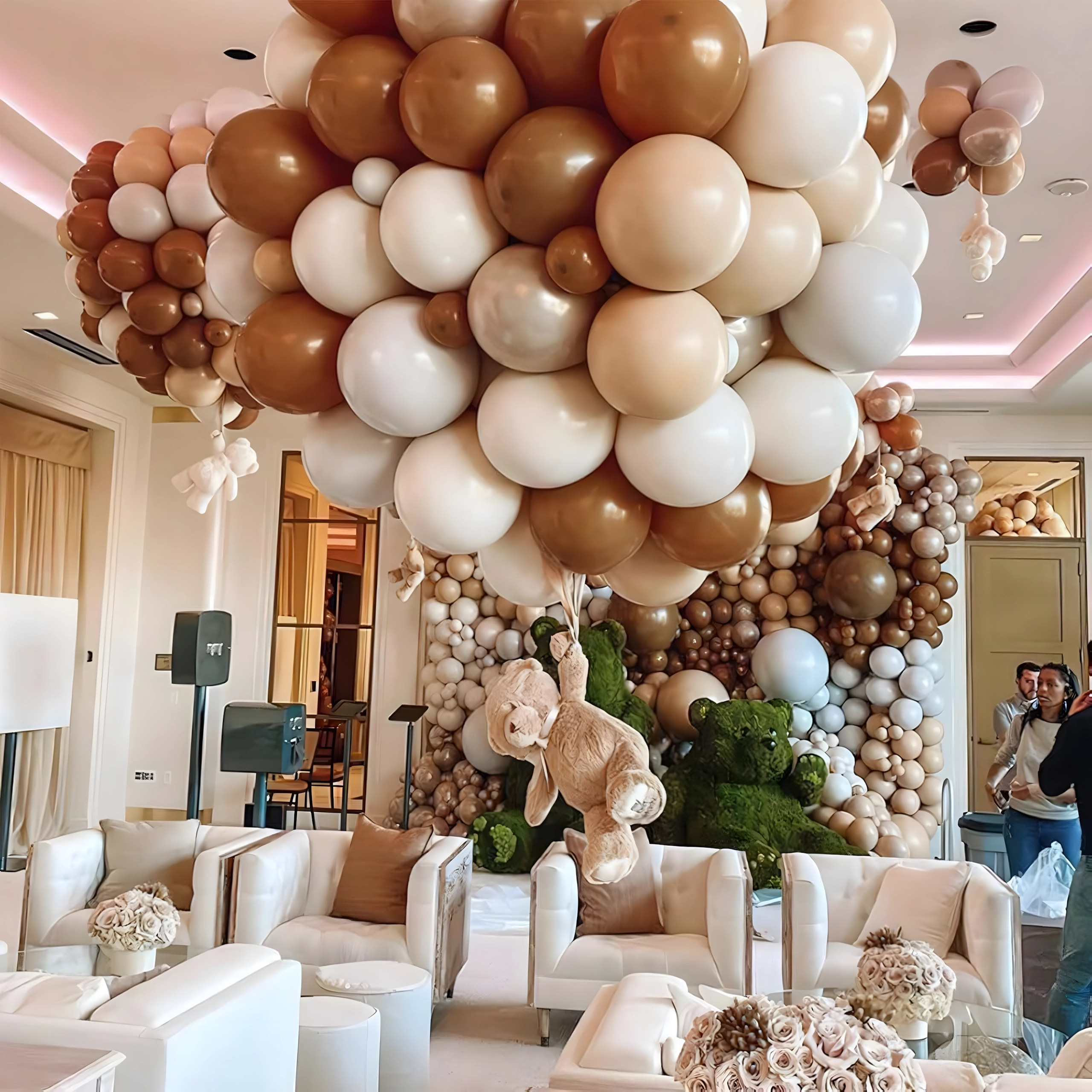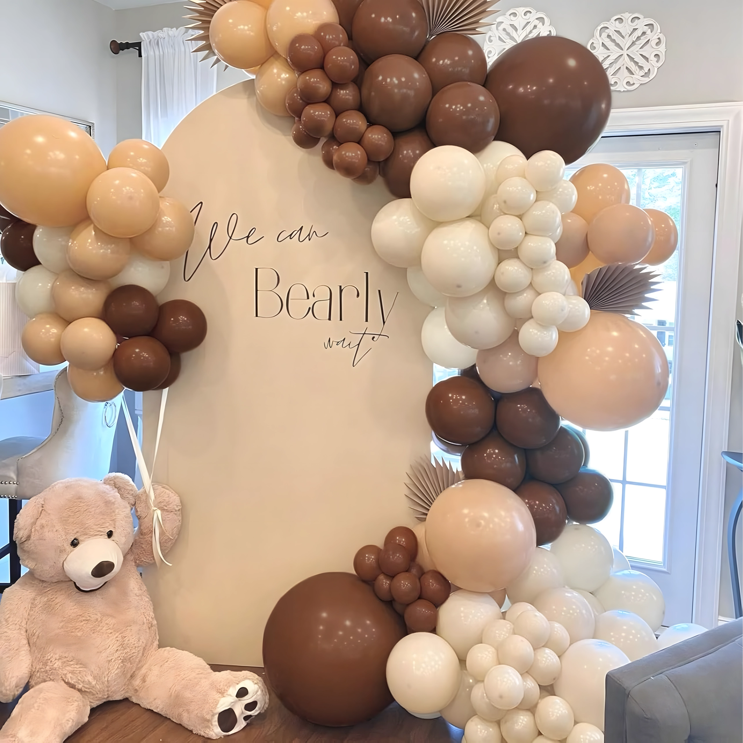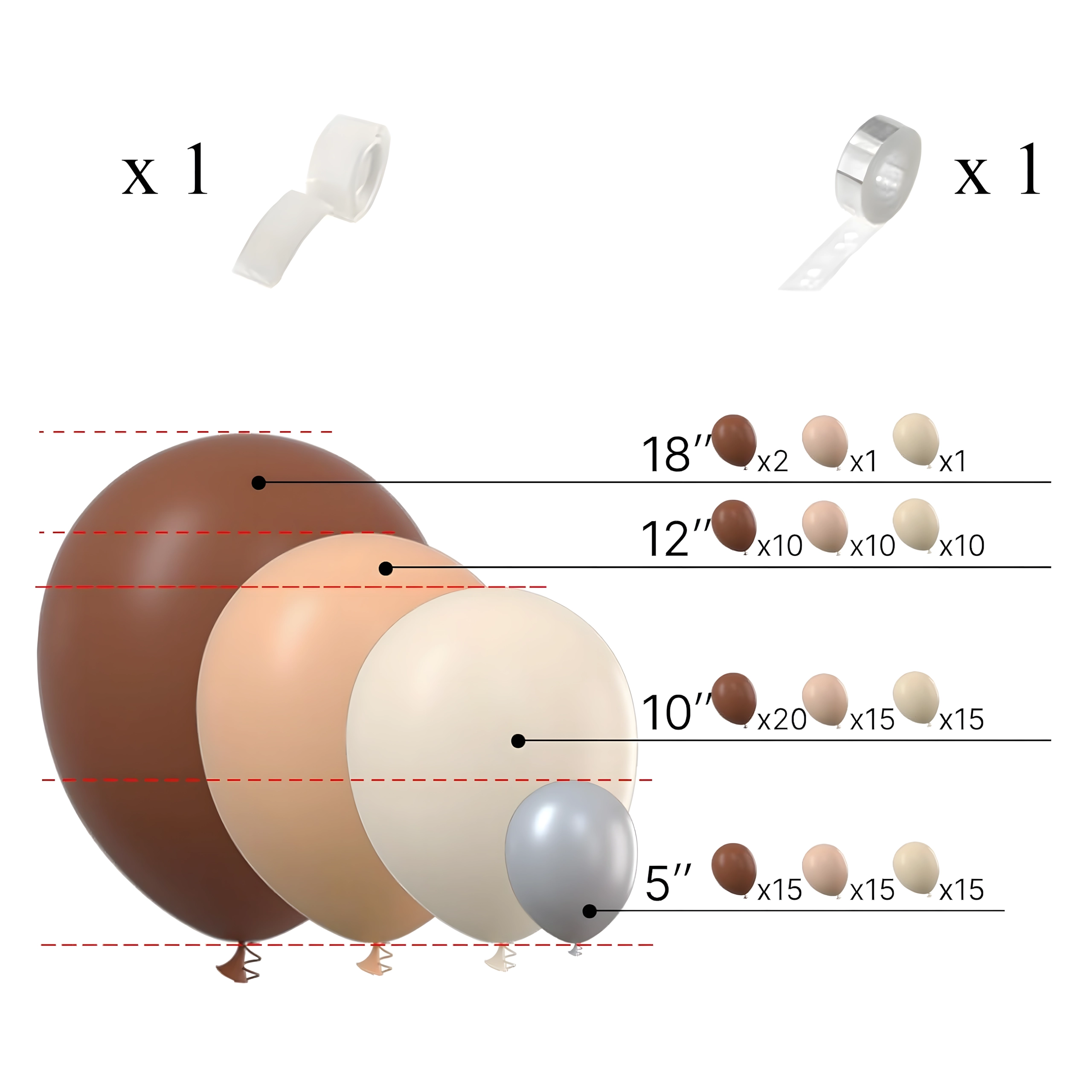 Stijlvolle ballonkrans in tinten bruin en goud die elke viering een vleugje luxe geeft. Bevat 141 onderdelen en is ideaal voor verjaardagen, bruiloften, oudejaarsavond en andere events. Dankzij de eenvoudige montage creëer je snel een indrukwekkende decoratie en een perfecte fotobackdrop.