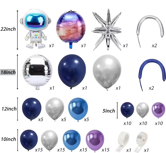 De Ballonnenslinger Astronaut is een perfecte keuze voor verjaardagen, themafeesten en kinderfeestjes. Maak een effectvolle decoratie die het middelpunt van je versiering wordt. De set is ontworpen voor snelle en eenvoudige montage, zodat je in een mum van tijd een aantrekkelijke installatie creëert.